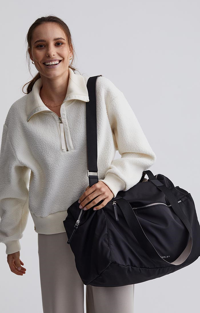Ležérní střih a lehká konstrukce z luxusního technického nylonu zajišťují, že se budete cítit pohodlně a zároveň elegantně. Taška je vybavena odnímatelným popruhem a množstvím snadno přístupných kapes, včetně pouzder na láhve s vodou a bezpečnostními zipy pro všechny vaše nezbytnosti. Díky charakteristickým kovovým zipům Varley a dvoubarevnému lemování je tato taška nejen funkční, ale také módní.