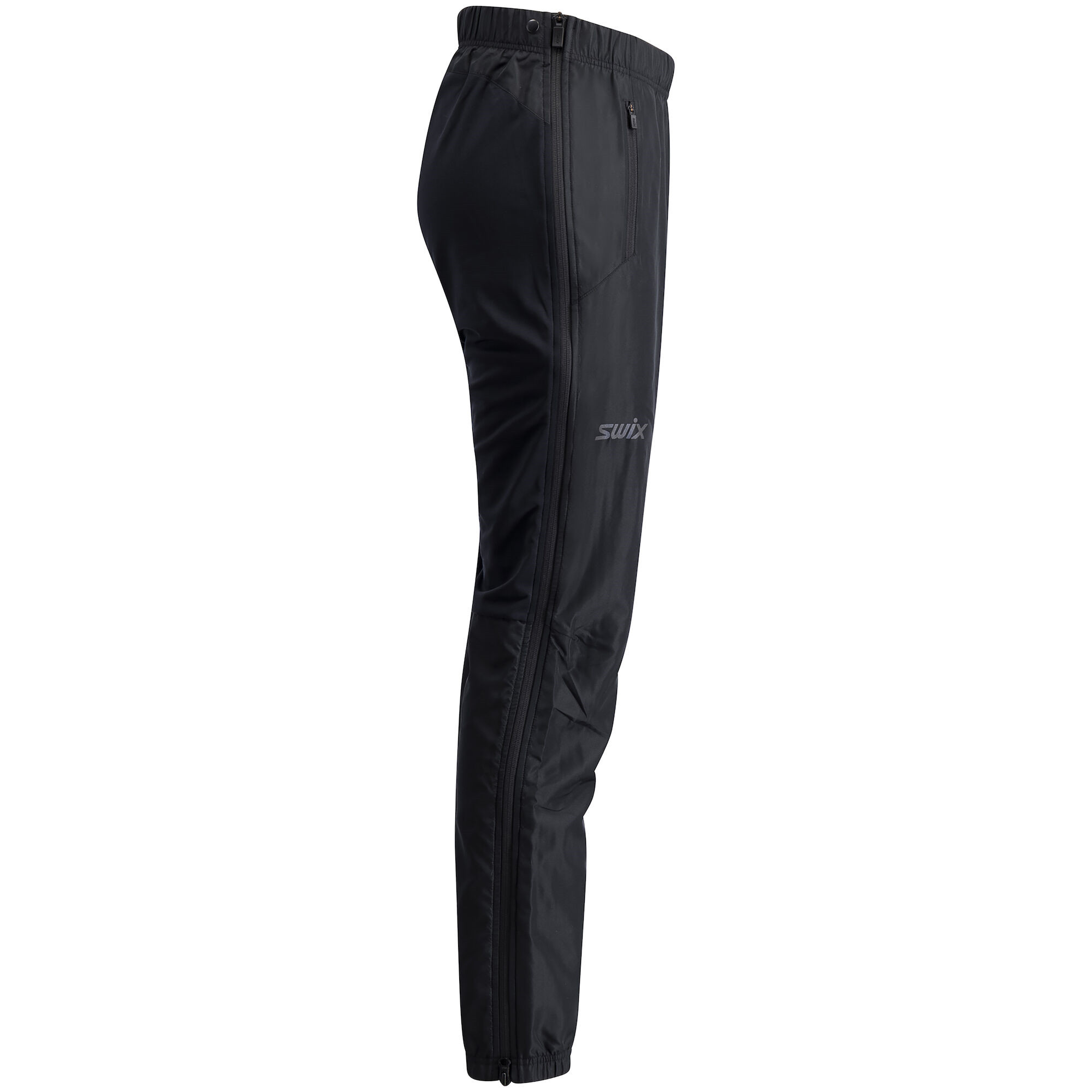 Tyto kalhoty od značky Swix jsou vyrobeny z lehkého a větruvzdorného materiálu, který chrání před nepříznivými povětrnostními podmínkami. Zadní část je vyrobena z pružného materiálu, který umožňuje volný pohyb a optimální přizpůsobení. Kalhoty mají elastický pas s integrovanou šňůrkou pro pohodlné nošení a plné postranní zipy pro snadné oblékání a svlékání. Dvě zipové kapsy na ruce poskytují dostatek prostoru pro nezbytnosti. Kalhoty jsou opatřeny reflexními detaily pro lepší viditelnost za snížených světelných podmínek a vodoodpudivou úpravou C0 DWR, která odpuzuje vodu a nečistoty.