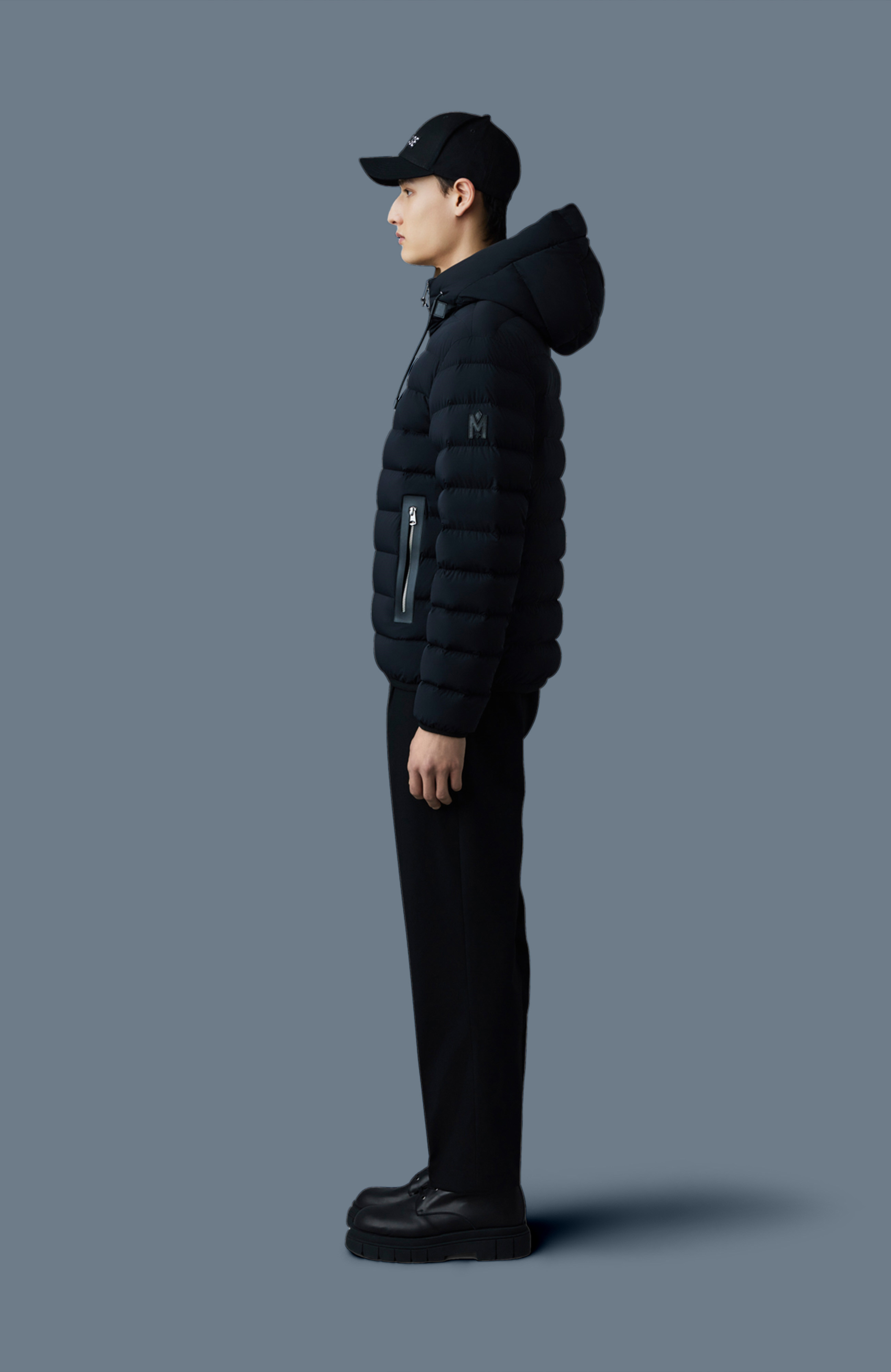 JACK-Z má regular fit střih s kapucí opatřenou nastavitelnou stínící légou, elastické lemy rukávů, spodní okraj s nastavitelným šňůrkováním a prémiový zip s lemováním z kůže. Tento klasický střih zajišťuje pohodlí i styl a je určený k nošení i s objemnějšími vrstvami. Design je čistý a decentní, doplněný raženým koženým plaketem a výrazným logem „M“ na levém rukávu. Boční kapsy jsou zateplené a uzavíratelné zipem s koženým lemováním.