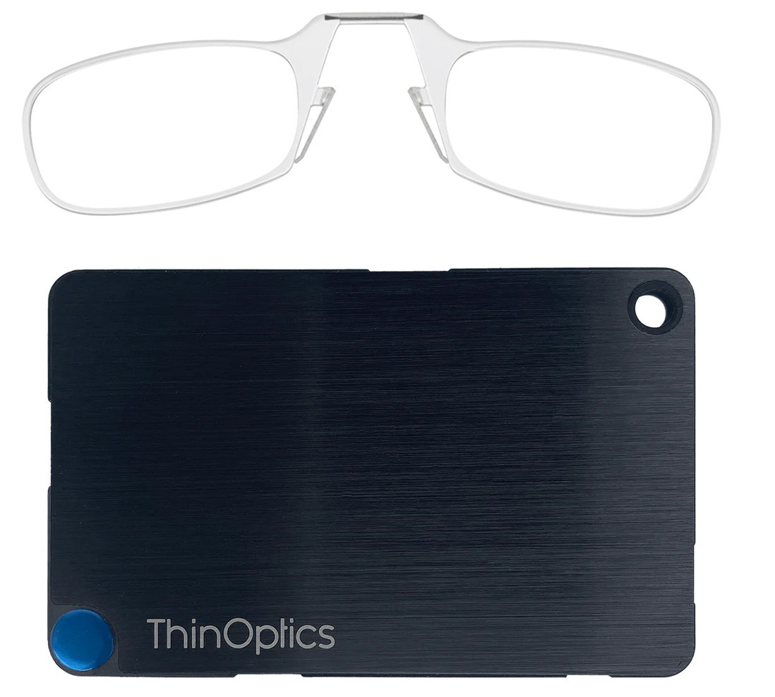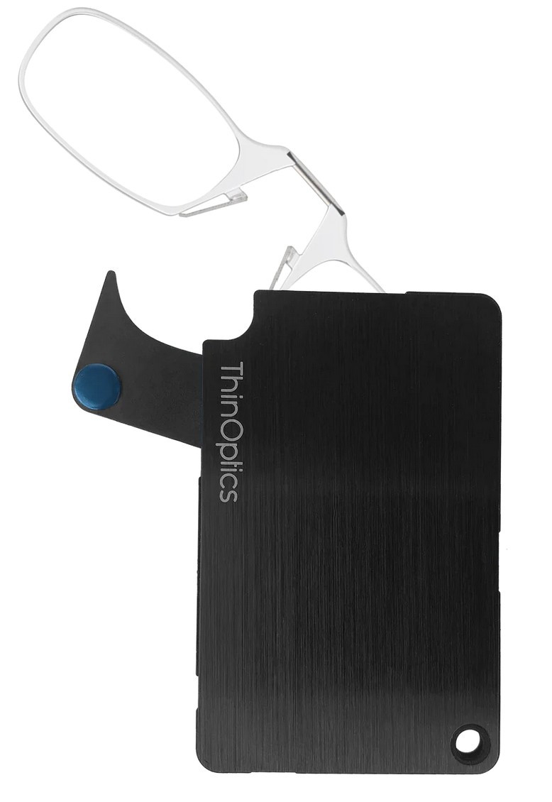 Ultralehký cvikr ThinOptics Armless s peněženkou z nerezové oceli je revolučním pokrokem v oblasti konsolidace vašich nezbytných věcí, neboť sdružuje vaše kreditní karty, hotovost, doklady a brýle na čtení v odolném a kompaktním pouzdře, které budete mít všude s sebou. Pouzdro ThinOptics Readers s peněženkou je vyrobeno z broušené nerezové oceli s PVD povlakem pro zvýšení pevnosti při nárazu a vynikající odolnosti proti oděru, vypadá skvěle a bezpečně pojme vše, co potřebujete.